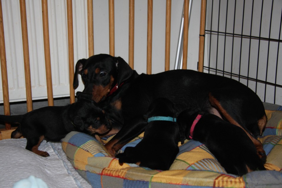 Unsere Welpen werden bei uns im Hause geboren, da werden sie von Anfang an in unseren Tagesablauf integriert .
